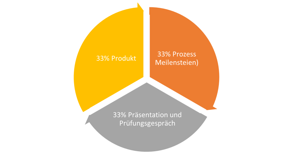 Die VA besteht aus einer Dokumentation und einem Anhang sowie der Präsentation und dem Prüfungsgespräch. Die VA-Note setzt sich wie folgt zusammen: